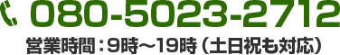 | 営業時間 | 9時~19時(土日祝も対応いたします) |